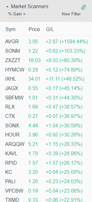 Here is an example of a filter you might use to scan for intraday runners:
