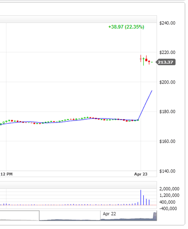 The below chart example is from NFLX on April 23, 2013. Some of you may look at this chart and think wow, the stock is up 22% and on high volume.