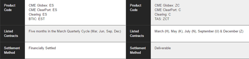 ES Futures and Corn Futures, contract settlements