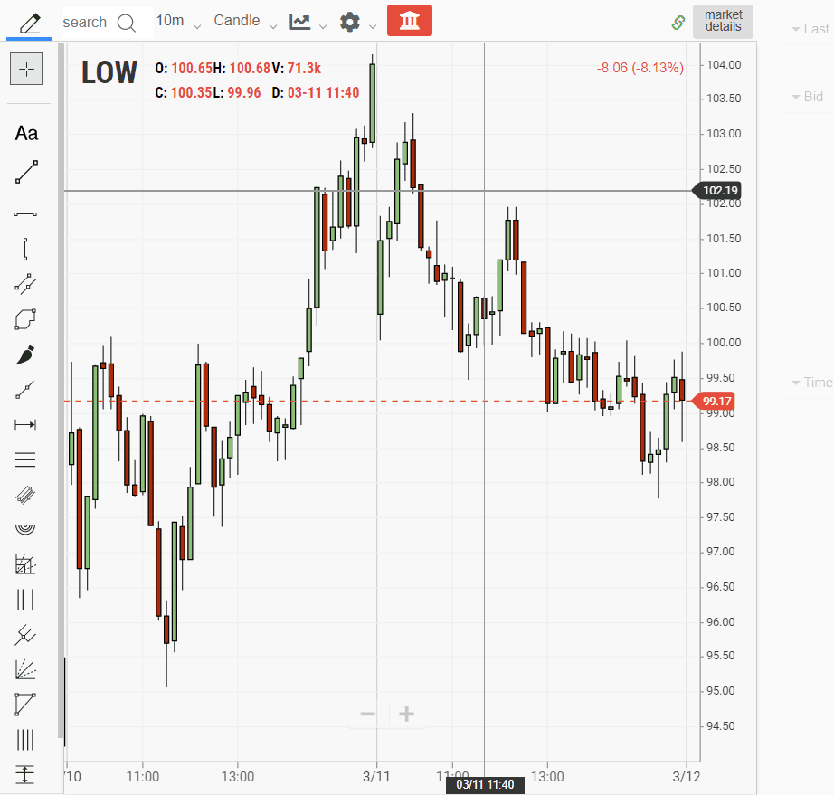 “The data in both Hong Kong and Korea present a strong case Netflix is seeing increased demand, as first-time app downloads inflected positively starting in January and continued into March,” said Mitchelson. This Trading Sim chart shows Netflix stock rising on March 11.