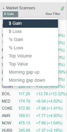 If you are looking for the most volatile stocks in the market, most brokers include these in their built-in scanners. All you have to do is adjust the filters for the highest % gainers or losers for the day. Many brokers or charting platforms will also include criteria like highest % turnover, top volume, and other key metrics that will help you identify where the money is flowing each day.