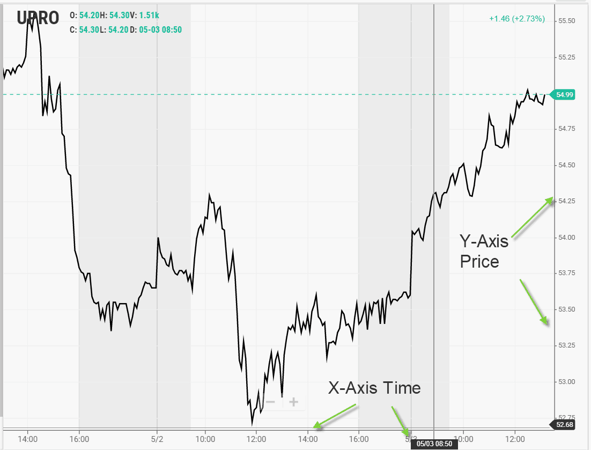 A stock chart is composed of an x and y-axis.