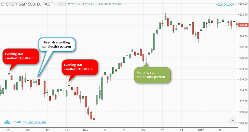 The chart below shows a number of candlestick pattern signals for the S&P 500 that signal a shift in market sentiment.