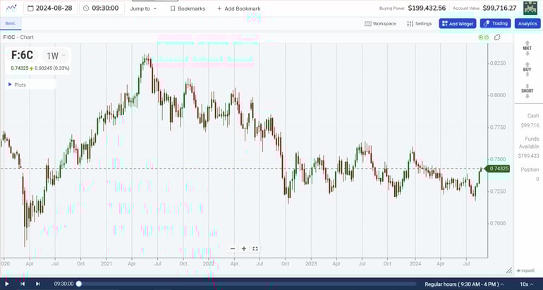 Inside, you can see the historical charts of all your favorite stocks, commodities, indices, and cryptocurrencies. Better yet, you can bookmark specific times in history to replay. Join us for a free trial and learn to manage your risk in the markets.