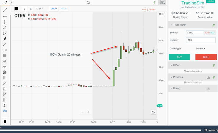 Similar to the CTRV example, the penny stock traders immediately jumped onboard right on the open. What do you think happened next?