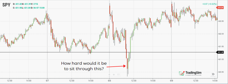 For starters, don’t go hog wild with your capital in one position. Make sure you leave yourself enough cushion. This way you don’t get antsy with every bar that prints.