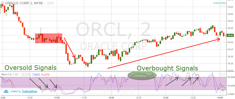 Above is the 2-minute chart of Oracle from May 9, 2016. At the bottom of the chart is the stochastic oscillator.