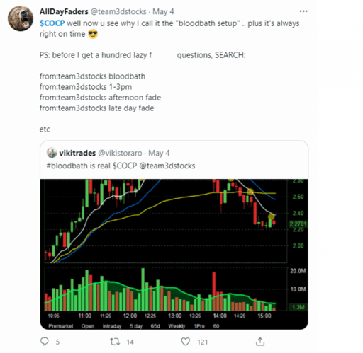 ADF is very good about tagging his posts for those of us wanting to learn from his market wisdom. And a quick search on Twitter for “bloodbath @team3dstocks” will turn up a wealth of information on the subject.