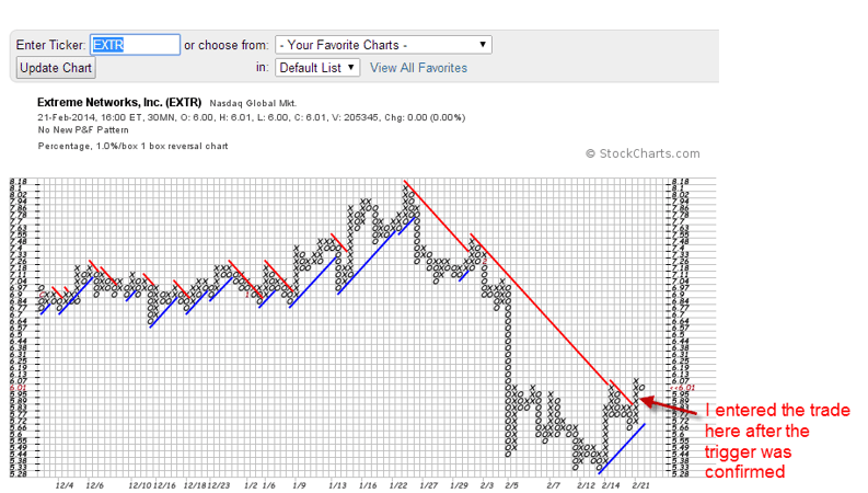 The other option, which I just did yesterday, is to buy the stock after the trigger has been confirmed. While this increases your risk, you have now confirmed that the uptrend has started.