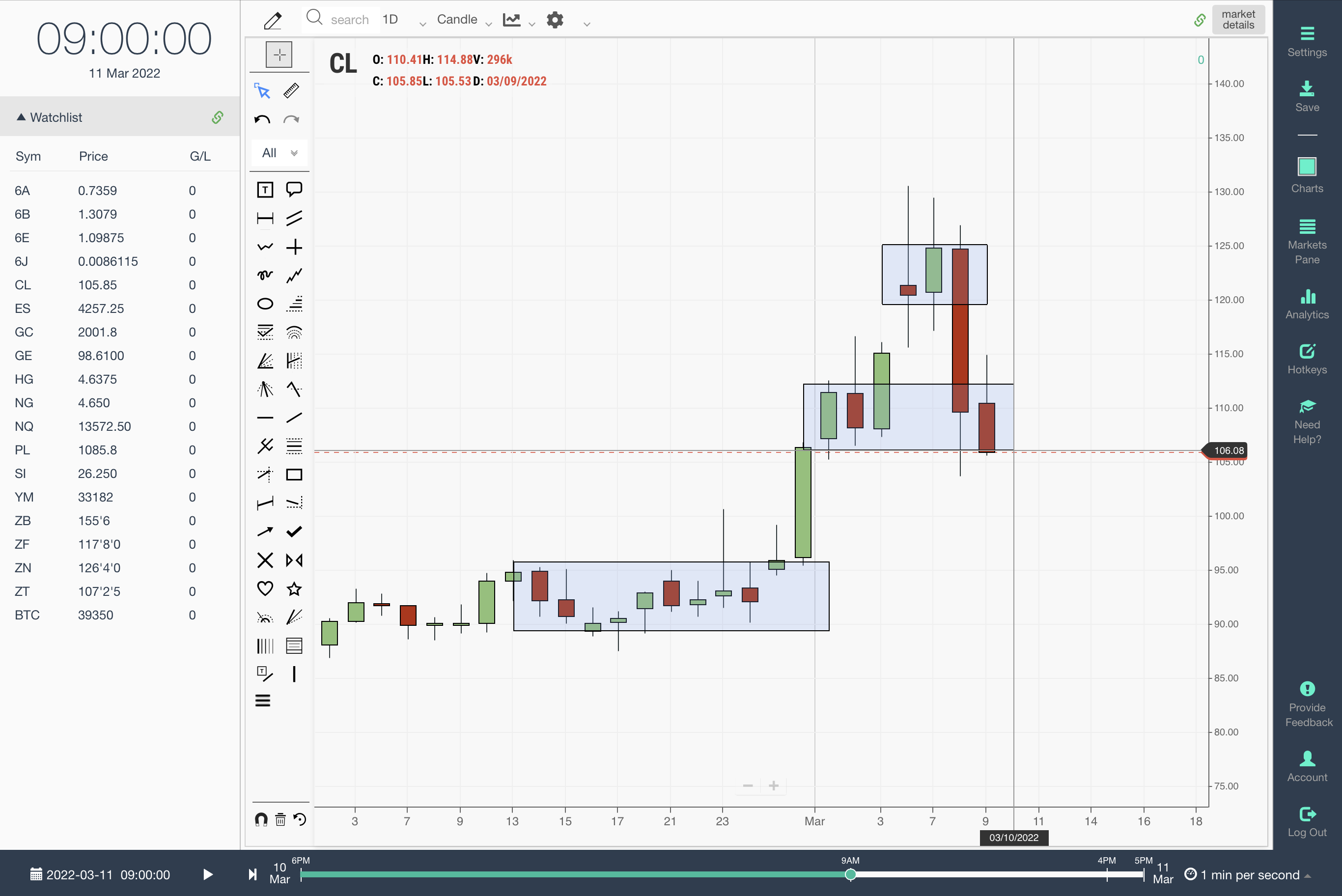 Much like the world of stocks, there are tons of futures strategies to choose from. Some are quantitative, some are discretionary. Regardless, most futures strategies are going to be based upon repeatable patterns. Along those lines, let’s discuss the importance liquidity zones, and use an example of a reversal strategy to illustrate how to trade futures.